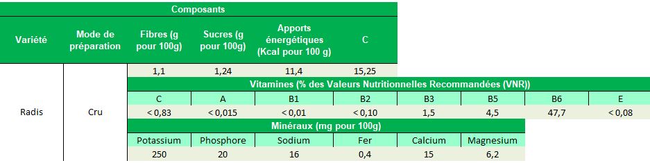 Crudités : betterave, céleri-branche, céléri-rave, radis Fiche vérifiée le 04/04/2025 "Réalisé par le CTIFL. Tous droits réservés CTIFL sur les photos et éléments graphiques, sous réserve d'indications de sources tiers" Diaporama Introduction Principales variétés et déroulement de la saison Calendrier de commercialisation Spécificités en agriculture biologique Réglementation Norme obligatoire Norme d’application volontaire Correspondance calibre/poids Critère d’achat, qualité et goût Crudités en RHD Durée de vie Données nutritionnelles A savoir Générer le PDF Génération du PDF en cours... Betterave Rouge Chioggia Céleri-Doré Céleri-Rave Radis Rose et Rouge Introduction Betterave légumière ou rouge Plante bisannuelle, la betterave légumière ou rouge est plantée en avril-mai, puis est récoltée en septembre de l’année suivante et se conserve jusqu’en juin après la récolte. La betterave primeur est semée en janvier et se récolte en juin avec ses fanes (feuilles). Céleri-branche Semé puis produit en plein champ, sous abri ou sous serre, il est à 80 % récolté de mai à novembre et au printemps en Languedoc-Roussillon. Céleri-rave Plante difficile à cultiver, le céleri-rave est une des rares espèces légumières dont la culture passe nécessairement par une phase préalable de production de jeunes plants en motte. Planté sous abri froid en mars-avril ou en plein champ en mai-juin, il est récolté de juin à novembre et disponible toute l’année grâce à une conservation en chambre froide. Radis Autrefois racine du printemps, le radis est désormais cultivé toute l’année. Il est récolté manuellement ou mécaniquement en botte maraîchère et plus récemment équeutée en emballage protecteur. Ces quatre légumes constituent avec les salades, les carottes râpées, le concombre et les tomates, l’essentiel des crudités. Ils sont appréciés pour la diversité et l’agrément qu’ils apportent aux hors d’oeuvres frais. Betterave légumière ou rouge La première référence à la famille des plantes appelée Beta est faite dans la littérature grecque vers 420 av. J.-C. La betterave provient de la lente amélioration de la bette maritime, plante sauvage poussant sur les bordures méditerranéenne et atlantique. À l’origine, on cultivait la betterave pour ses feuilles. Plus tard, la racine est devenue un légume populaire, actuellement commercialisée crue, cuite et surtout sous vide, entière ou découpée. Céleri On consomme cette plante à partir du XVIe siècle ; elle aurait donné, par sélections successives, le céleri feuilles ou à couper, puis le céleri-rave (boule) et enfin le céleri à côte ou céleri-branche. Radis Originaire d’Extrême-Orient, le radis est mentionné dans un écrit chinois du XIe siècle avant J.-C. Déjà cultivé, semble-t-il, en Égypte sous la 12e dynastie, les Grecs en connaissaient de nombreuses variétés. Il apparaît au nord-ouest de l’Europe dès le XVIe siècle. Principales variétés et déroulement de la saison Calendrier de commercialisation Spécificités en agriculture biologique LE RADIS Le succès de la culture en agriculture biologique du radis est principalement basé sur le principe de rotation des cultures. L’engrais vert est également employé. Il s’agit d’une culture qui va pousser sur la parcelle et qui ne sera pas récoltée. C’est le cas par exemple d’un mélange de féverole et d’avoine. Les plantes se décomposent sur la parcelle avant la nouvelle culture de radis. Elles rejettent de l’azote ce qui contribue à la fertilisation du sol. Elles ont également un effet assainissant des maladies du sol. Parmi les principaux ravageurs de cette culture, il y a l’altise (insecte coléoptère). Le contrôle de ce ravageur se fait grâce à un voile de protection à partir du printemps. LA BETTERAVE La culture de la betterave en agriculture biologique est basée sur la rotation des cultures de façon à empêcher l’installation pérenne de parasites et de maladies d’une part et prévenir un déséquilibre du sol de l’autre. Il existe des produits de traitement contre les différentes maladies et parasites, tous issus de substances naturelles. LE CELERI : La culture du céleri en agriculture biologique nécessite une bonne rotation des cultures. Le choix des variétés plantées se portera sur les plus résistantes aux maladies et aux ravageurs. Les opérations de désherbage se font de façon mécanique ou manuelle. L’emploi de désherbants chimiques est proscrit par le cahier des charges. Réglementation Application d'une "Norme obligatoire" ou d'une "Norme volontaire" Norme obligatoire Betterave crue, céleri-branche, céleri-rave, radis Ces espèces sont soumises à la norme générale de commercialisation européenne définie dans le Règlement (UE) N°2023/2429. Norme d'application volontaire Les expéditeurs peuvent, s’ils le souhaitent, indiquer une catégorie sur les colis de ces produits. Dans ce cas, la marchandise doit correspondre aux exigences de qualité et de calibre de la norme CEE-ONU FFV-12 concernant la commercialisation et le contrôle de la qualité commerciale du céleri-branche ou de la norme CEE-ONU FFV-59 concernant la commercialisation et le contrôle de la qualité commerciale des légumes à racine et à tubercule (inclus la betterave rouge, le radis, le céleri rave). Correspondance calibre/poids Calibrage Pour le céleri-branche, il est obligatoire pour les produits étiquetés en catégorie I seulement. Aucune exigence réglementaire de calibre pour les légumes à racine et à tubercule. Critère d’achat, qualité et goût La betterave doit être de couleur rouge prononcée, avec une peau non ridée, sans défaut apparent. La betterave rouge fraîche et la betterave rouge cuite sous vide bénéficient tous deux d'un cahier des charges Label Rouge. Le céleri-branche doit avoir une coloration franche, t